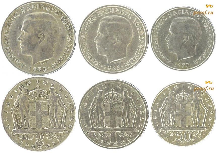 Набор из 3 монет: 50 лепта, 1 и 2 драхмы. Константин Е-815 set