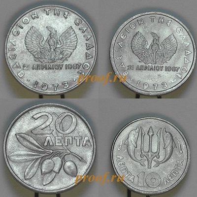 Набор из 2 монет: 10 и 20 лепт. С датой "1967". Диктатура "Черных полковников". Е-121а