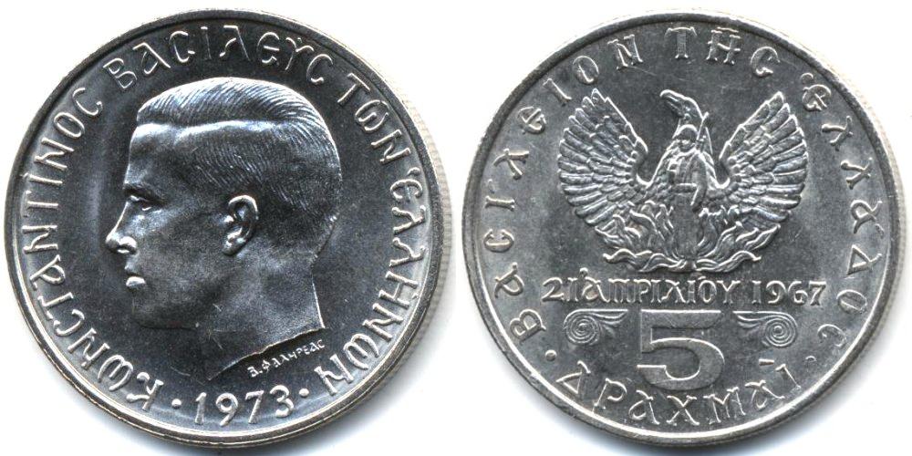 Константин II. Феникс. С датой "1967". Диктатура "Черных полковников" Близко к А/Ц