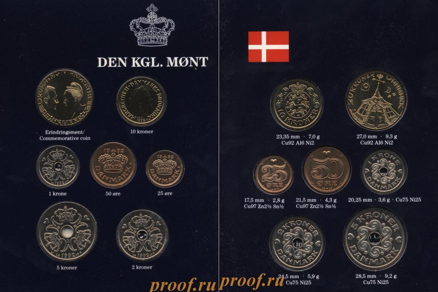 Е-1362 : Набор из 6 монет: 25, 50 эйре, 5, 10, 20 и 20 крон(50 лет королевы Маргареты). В блистере : МОНЕТЫ : ЕВРОПА : ДАНИЯ