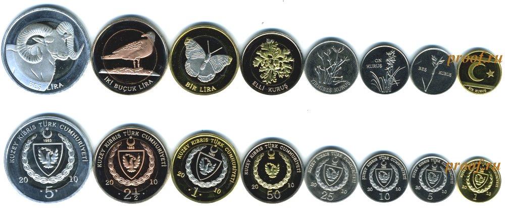 Набор из 8 монет: 1, 5, 10, 25, 50 куруш и 1, 2,5, 5 лир. Красивые монеты с изображениями растений и животных. Р-2212