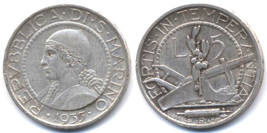 Е-1716 : Плуг. Голова женщины XF--XF : МОНЕТЫ : ЕВРОПА : САН-МАРИНО