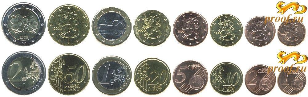 Набор из 8 монет: 1, 2, 5, 10, 20, 50 евроцентов, 1 и 2 евро А-11