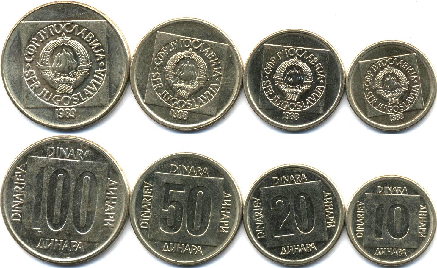 Набор из 4 монет: 10, 20, 50 и 100 динаров