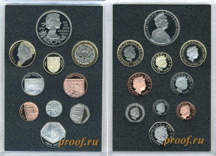 Набор из 10 монет: 1, 2, 5, 10, 20, 50 пенсов, 1, 2, 2 и 5 фунтов. Набор в подарочном футляре и коробке под кожу. "ПРУФ". Е-1168
