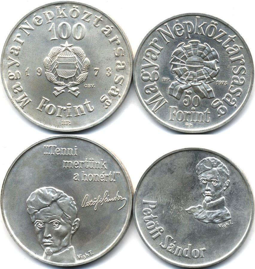 150 лет со дня рождения Ш.Петефи (2 монеты:50+100ф)