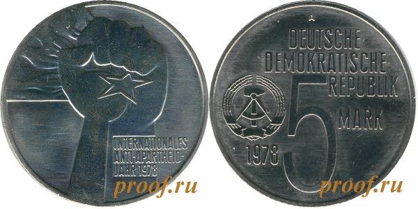 Е-1383 : Набор из 7 монет: 1, 5, 10, 20, 50 пфенигов, 1, 2 марки с 1963 по 1990год. XF : МОНЕТЫ : ЕВРОПА : ГЕРМАНИЯ : ГДР