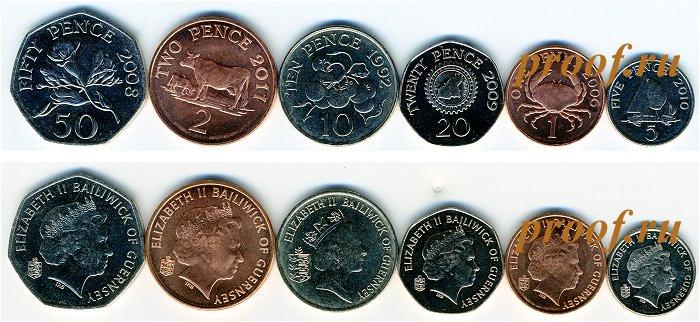 Набор из 6 монет: 1 пенни, 2, 5, 10, 20 и 50 пенсов 1983-...
