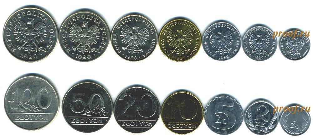 Набор из 7 монет: 1, 2, 5, 10, 20, 50 и 100 злотых