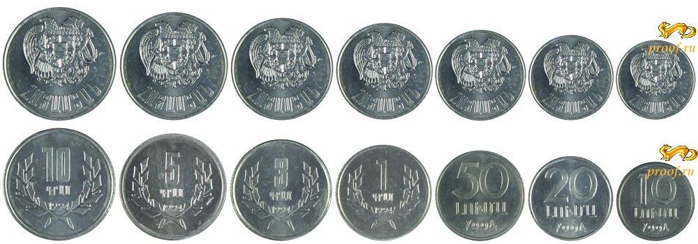 Набор из 7 монет: 10, 20 и 50 лумов,1, 3, 5 и 10 драмов. Г-2