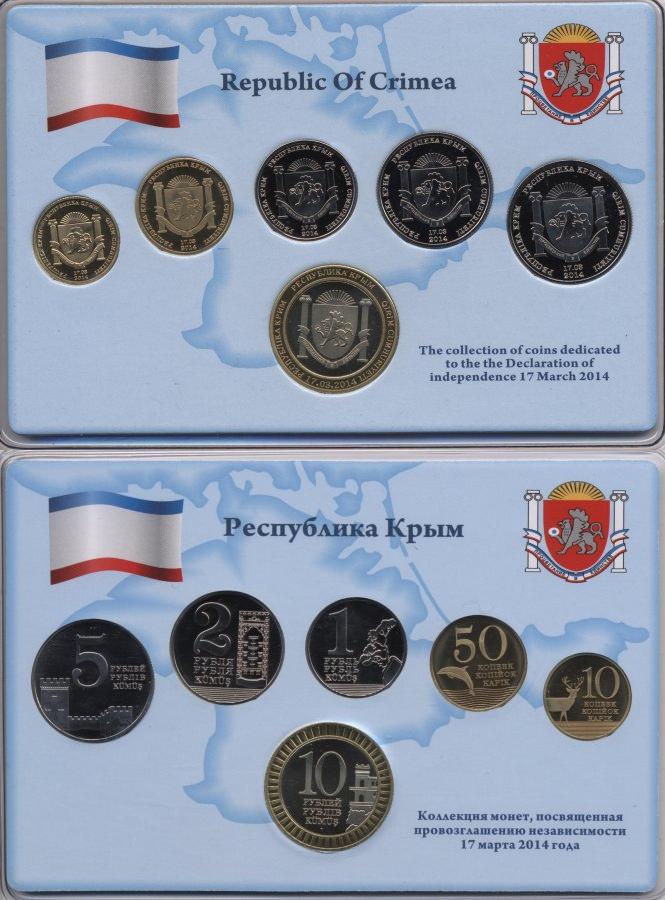Набор из 6 монет: 10, 50 копеек, 1, 2, 5 и 10 рублей(бимет). Памятные монеты, посвященные провозглашению Независимости Республики Крым 17 марта 2014 год. В блистере. Пруф-лайк. Рифленный гурт