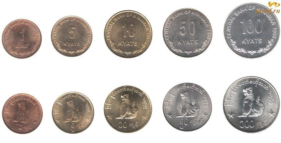 Набор из 5 монет: 1, 5, 10, 50, 100 кьят. Р-453 set