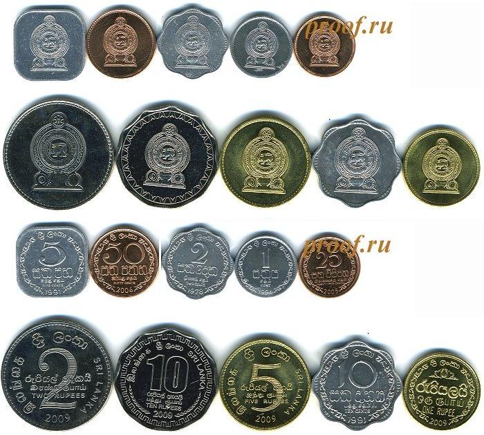 Набор из 10 монет: 1, 2, 5, 10, 25, 50 центов 1, 2, 5, 10 рупий. Р-2109 set
