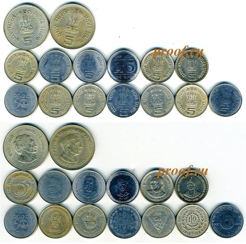 Набор из 15 монет по 5 рупий