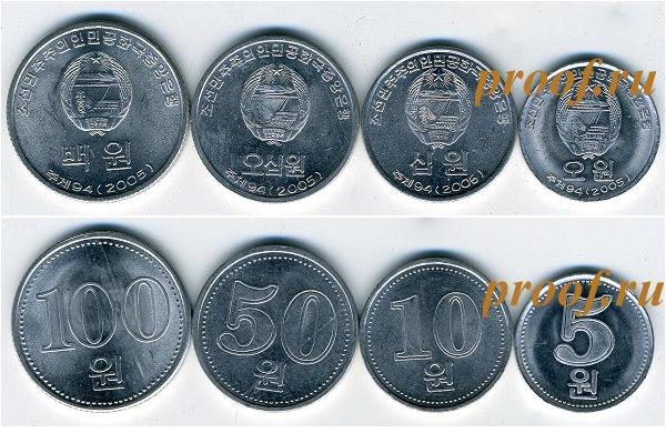 Набор из 4 монет: 5, 10, 50 и 100 вон. Р-1634