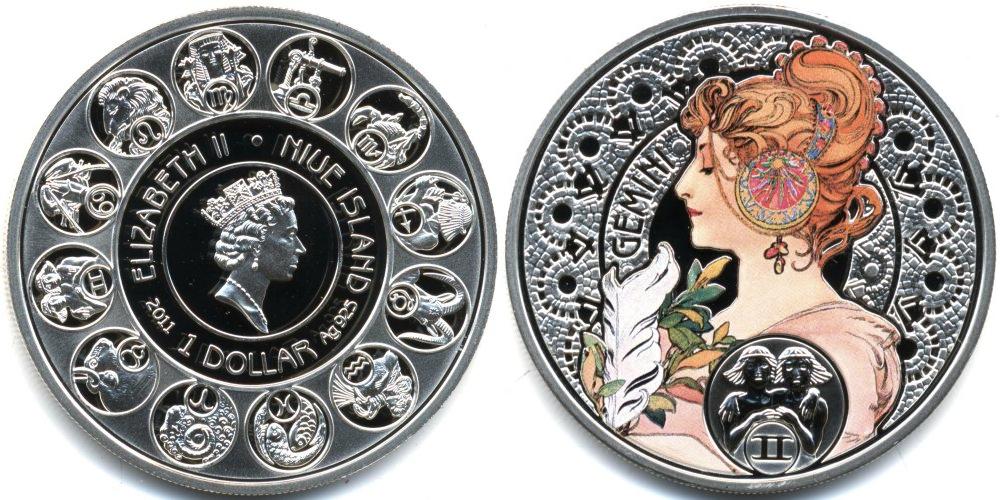 Близнецы. Знаки зодиака. Эмалированная монета. С сертификатом
