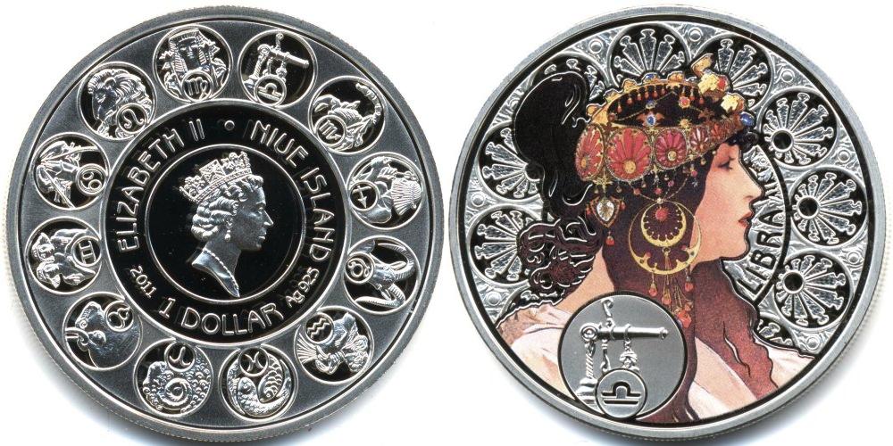 Р-4405 : Лев. Знаки зодиака. Эмалированная монета. С сертификатом : МОНЕТЫ : АВСТРАЛИЯ И ОКЕАНИЯ : НИУЭ