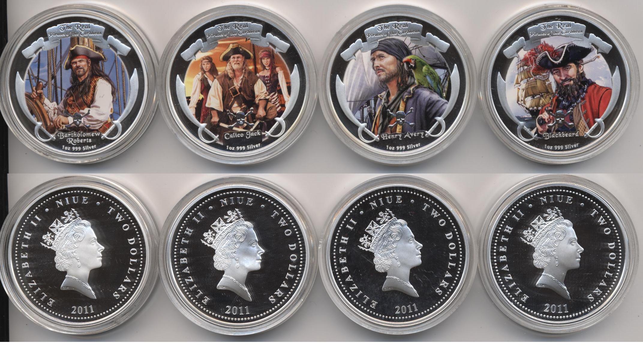 Набор из 4 монет по 2 доллара. Пираты Карибского моря