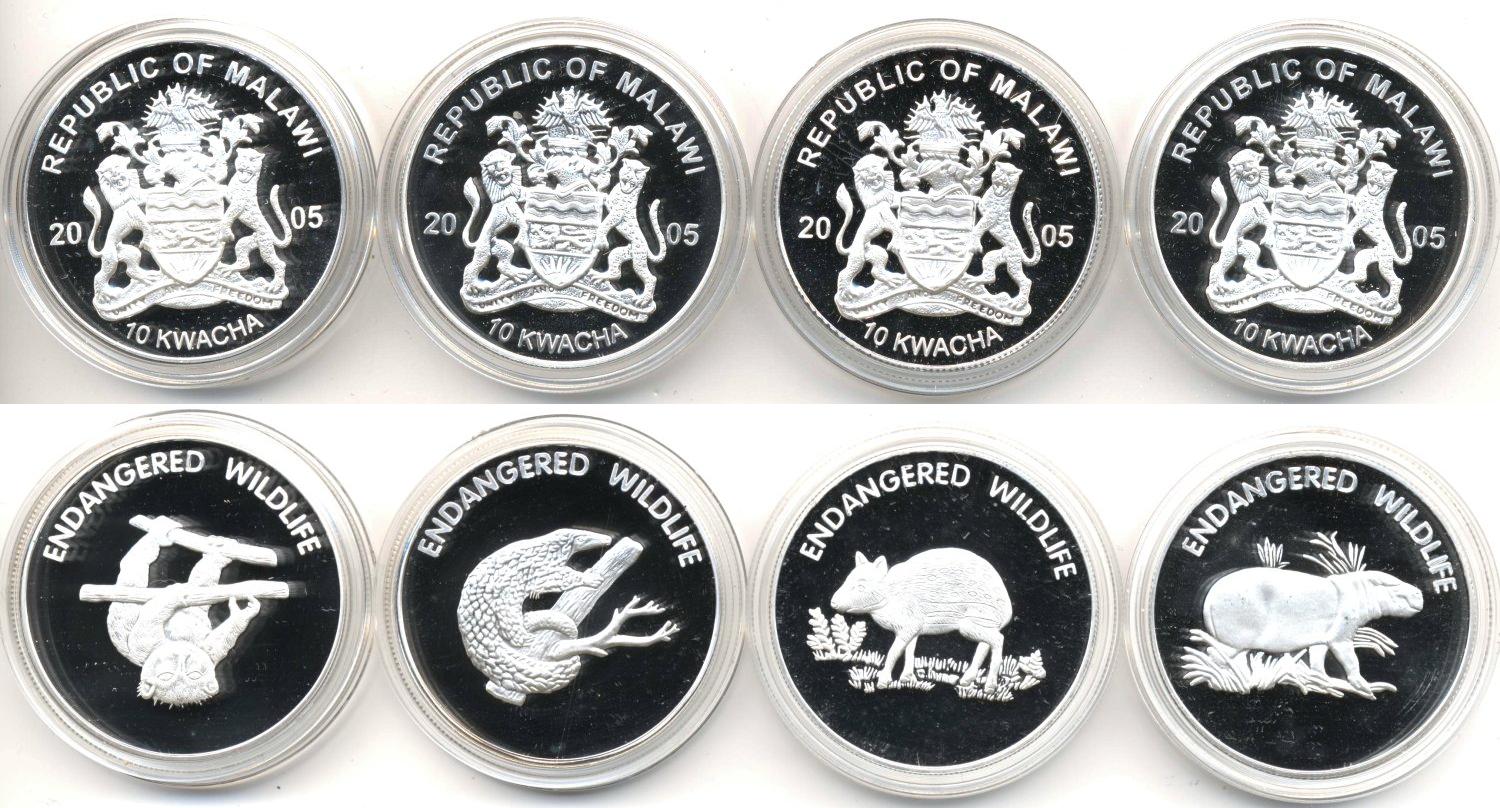 Набор из 4 монет по 10 квач. Местные животные. Посеребрённые монеты кронового размера. Р-954