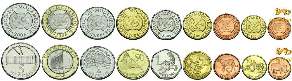 Набор из 9 монет: 1, 5, 10, 20, 50сентаво, 1, 2, 5, 10 метикалей. Монета номиналом 10 метикалей - биметаллическая. Флора, фауна, архитектура ...Р-1697 set