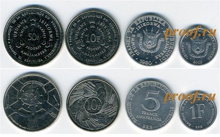 Набор из 4 монет: 1, 5, 10 и 50 франков. Р-2844