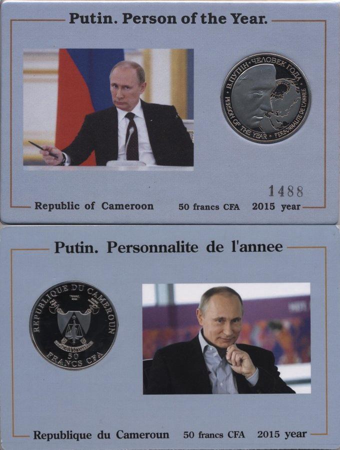 Ïåðâàÿ â èñòîðèè íóìèçìàòèêè îôèöèàëüíàÿ ìîíåòà "Ïóòèí-÷åëîâåê ãîäà".  áëèñòåðå. Áåç äàòû. Îøèáî÷íî èçîáðàæåíà êàðòà ÑÑÑÐ âìåñòî êàðòû Ðîññèè.