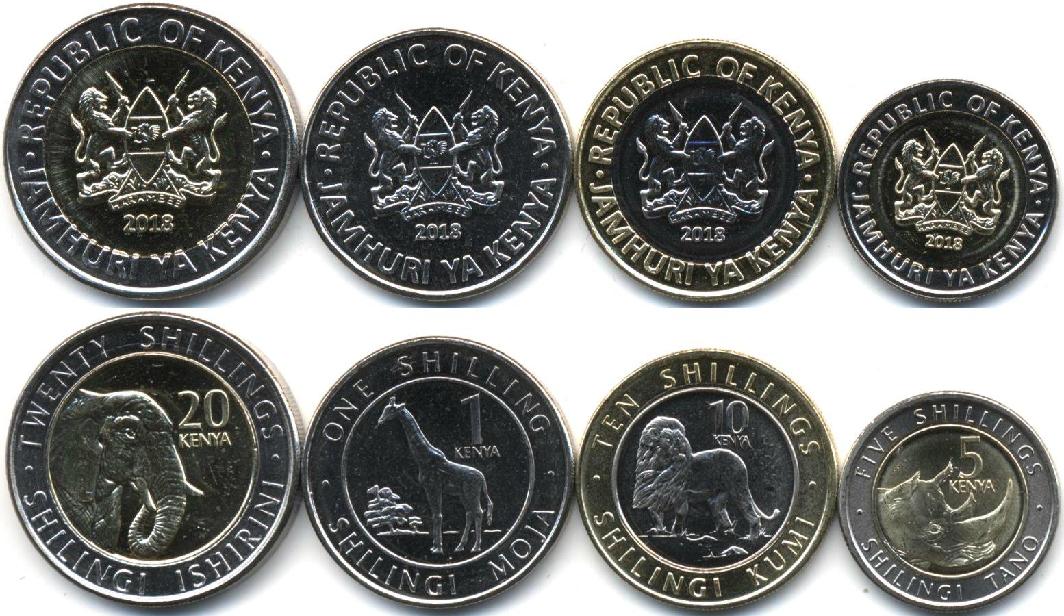Набор из 4 монет(3 из них биметалл): 1, 5, 10, и 20 шилингов. Р-628а set