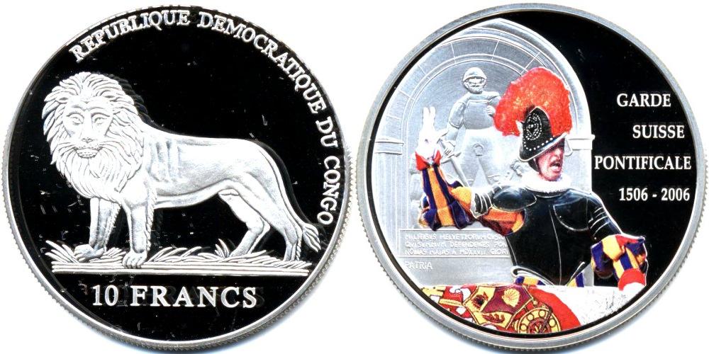 500 лет швейцарской гвардии Папы Римского. Монета покрыта эмалью