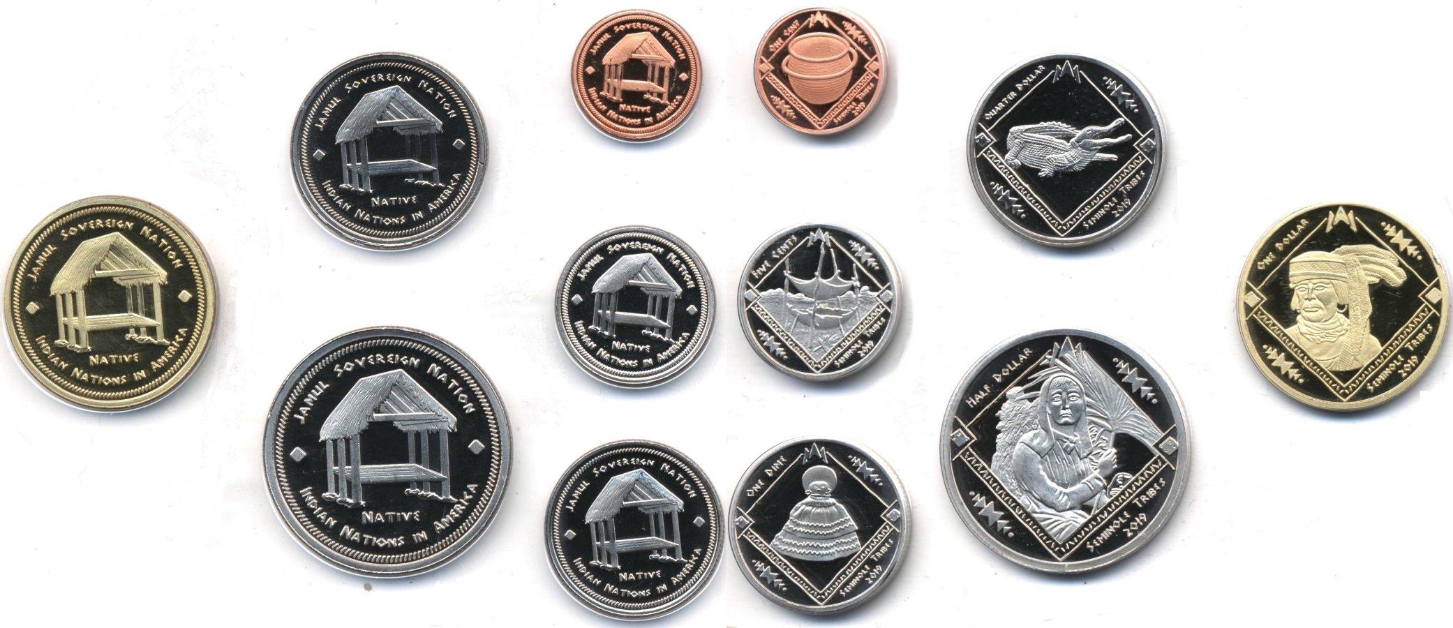 Набор из 6 монет: 1, 5, 10, 25 и 50 центов, 1 доллар. Монеты племени Семинолов. По американским законам индейцы имеют право чеканить собственные деньги, имеющие хождение внутри резервации