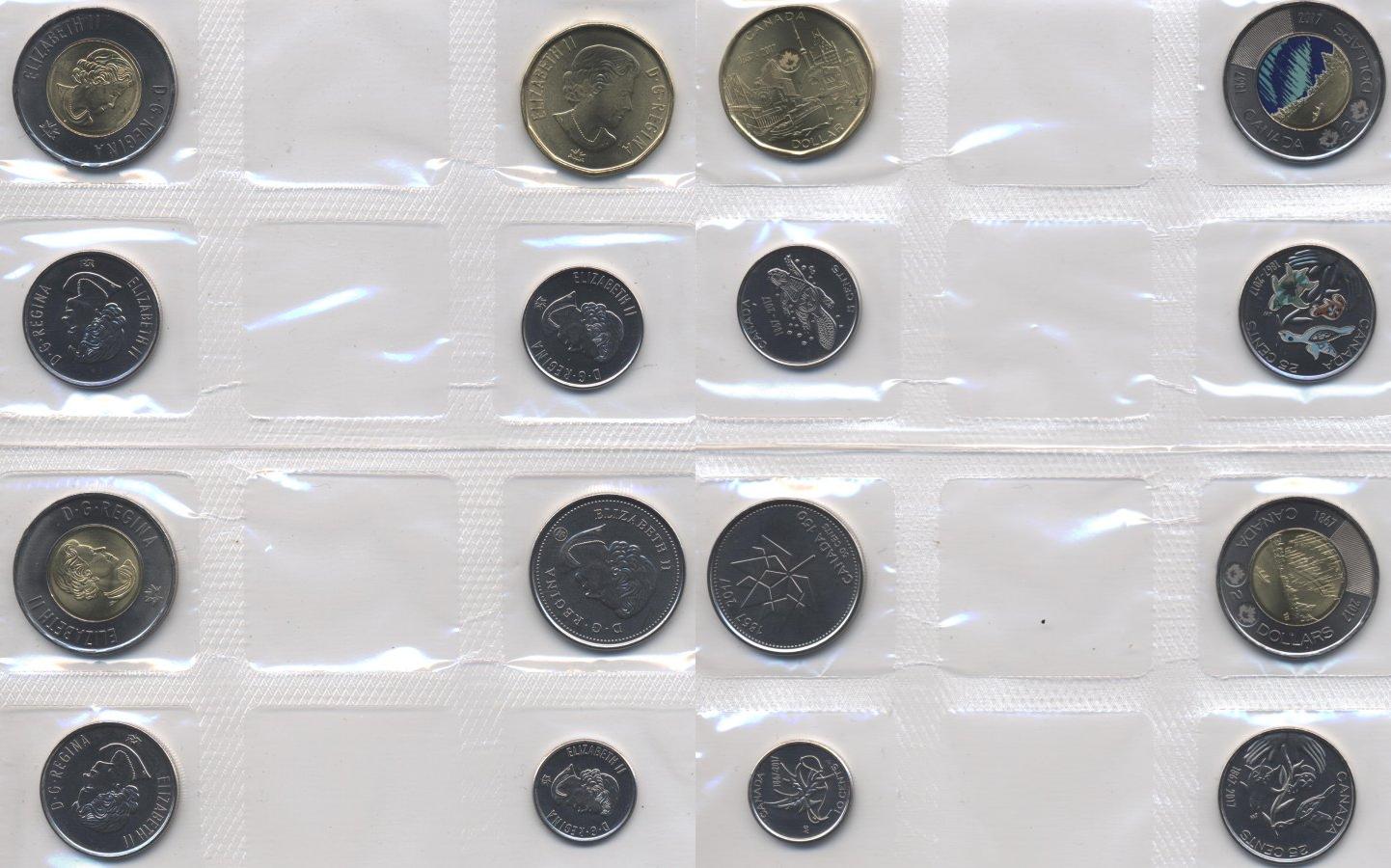 Набор из 8 монет: 5, 10, 25, 25(цветная), 50 центов, 1, 2 и 2(цветная) доллара. "150 лет Канаде". Монеты в запайках и в конверте монетного двора Канады.