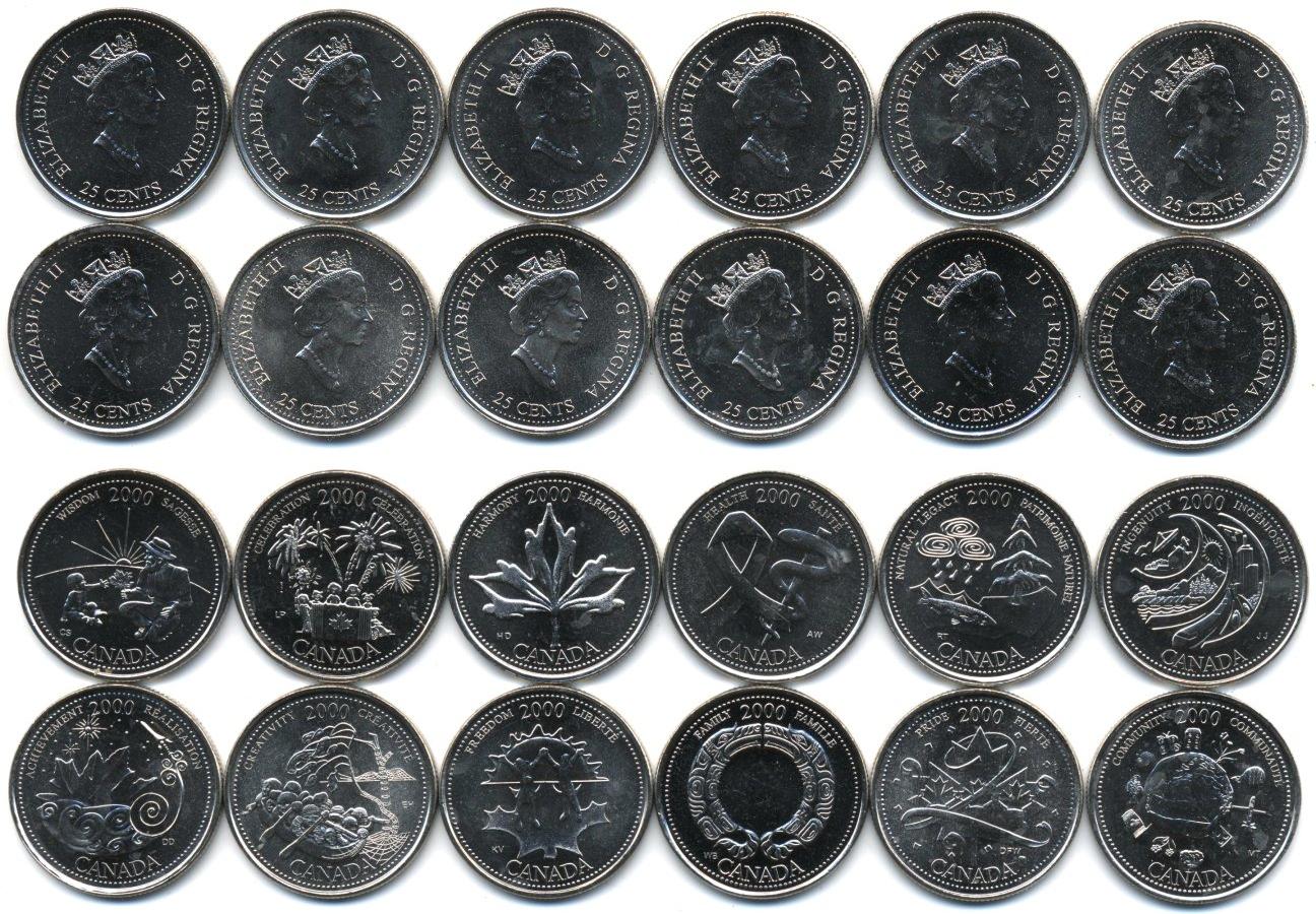 Оптовый лот-10 наборов. Набор из 12 монет по 25 центов. Миллениум Р-741