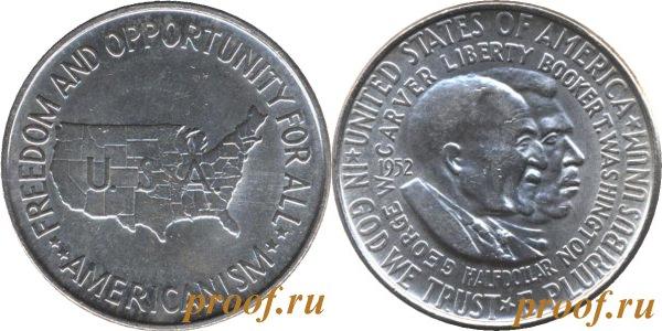 Б. Т. Вашингтон и Д. В. Карвер. Надпись: "Американизм-свобода и равные возможности для всех". Карта США AUNC