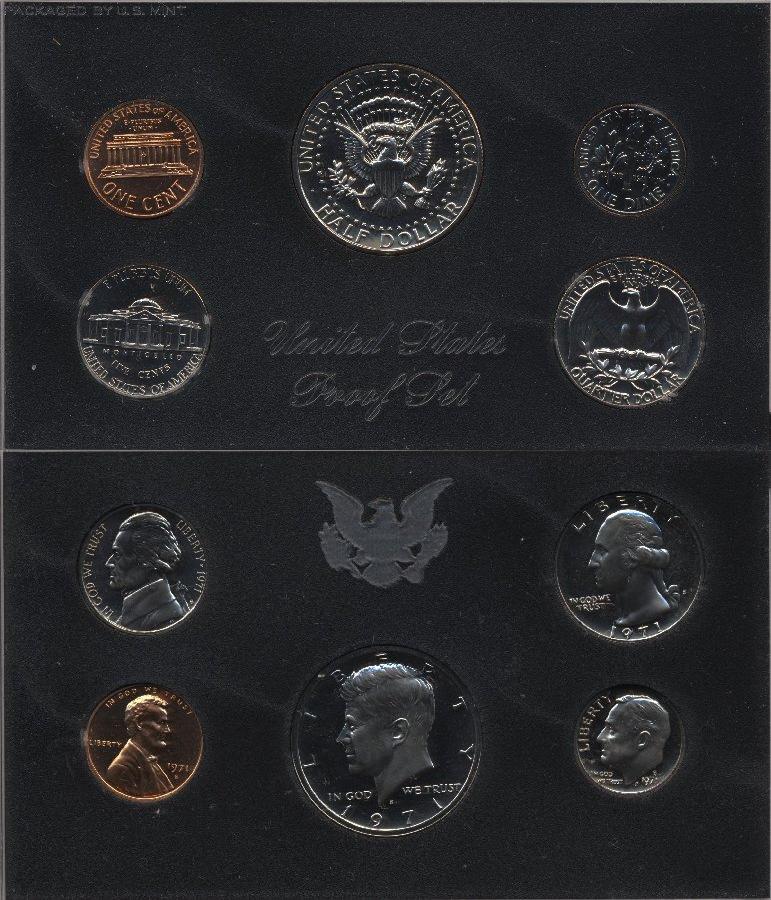Набор из 5 монет: 1, 5, 25, 50 центов и 1 дайм. Пруф