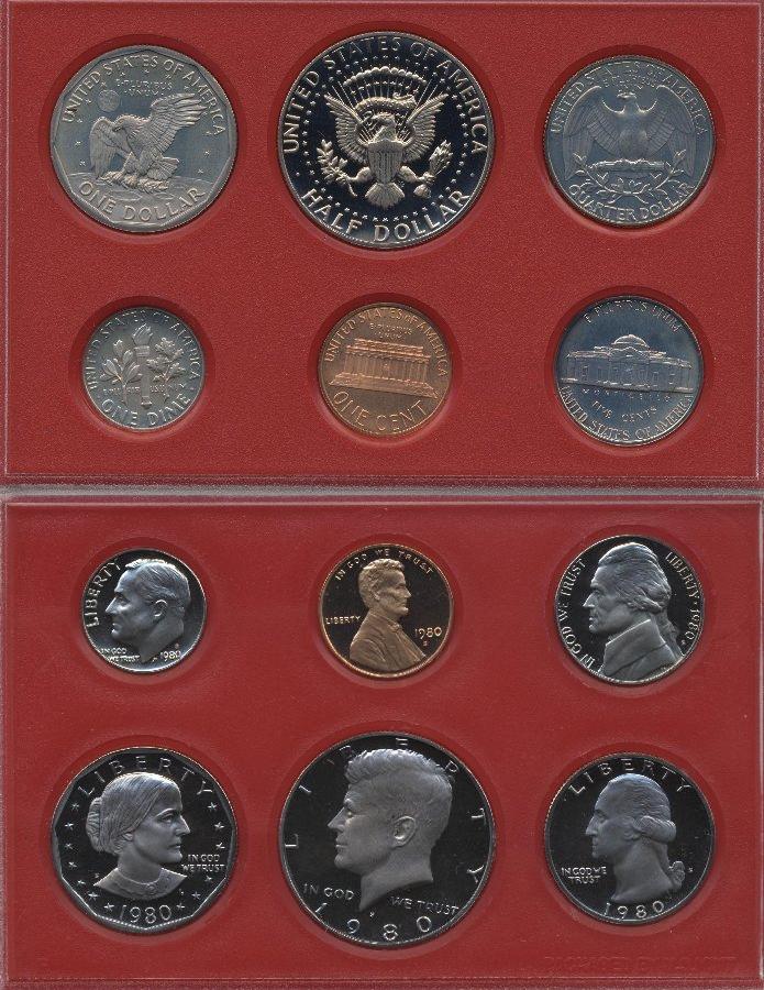 Набор из 6 монет: 1, 5, 25, 50 центов, 1 дайм и 1 доллар(Энтони). Пруф