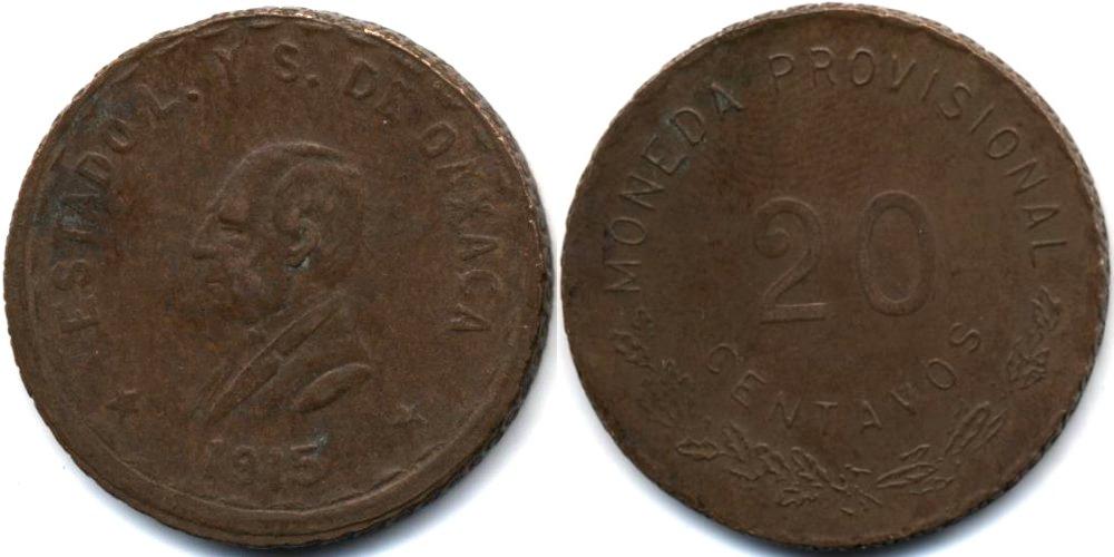 Р-251д : Штат Оахака. Временное правительство. Овальный срез бюста : МОНЕТЫ : ЛАТИНСКАЯ АМЕРИКА : МЕКСИКА