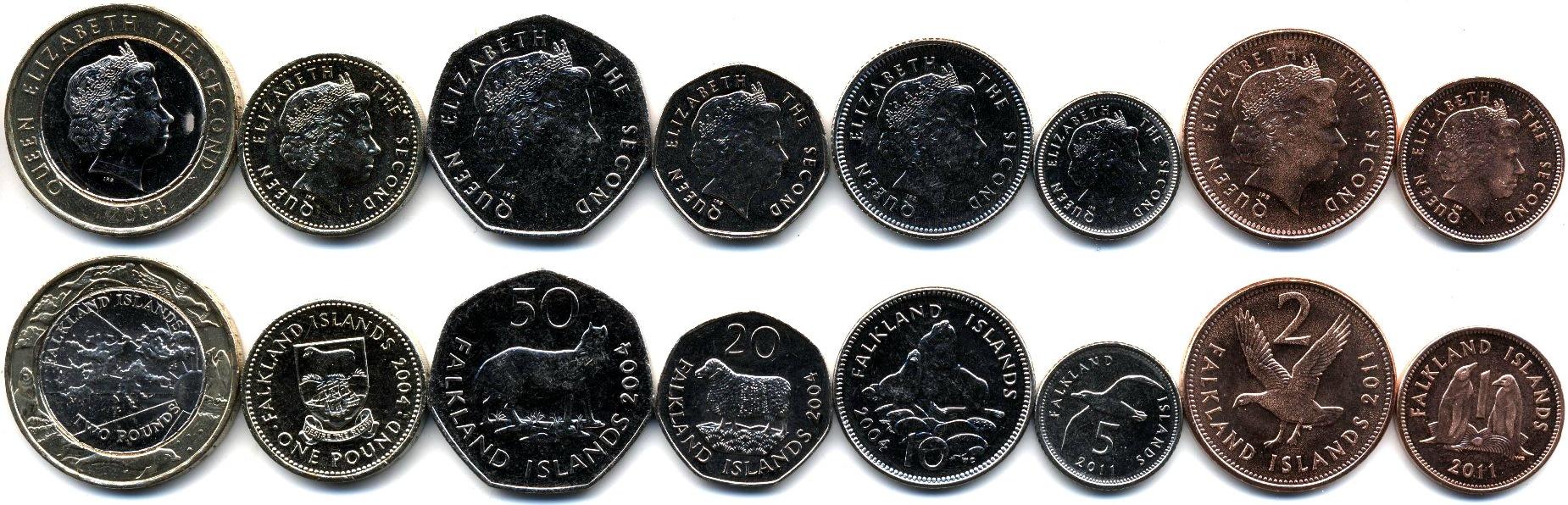 Набор из 8 монет: 1, 2, 5, 10, 20, 50 пенсов, 1и 2 фунта