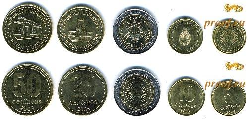 Набор из 5 монет: 5, 10, 25, 50 сентаво и 1 песо. Р-2114 set
