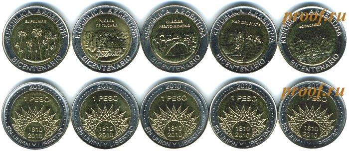 Набор из 5 монет. 200 лет Аргентине Р-2687