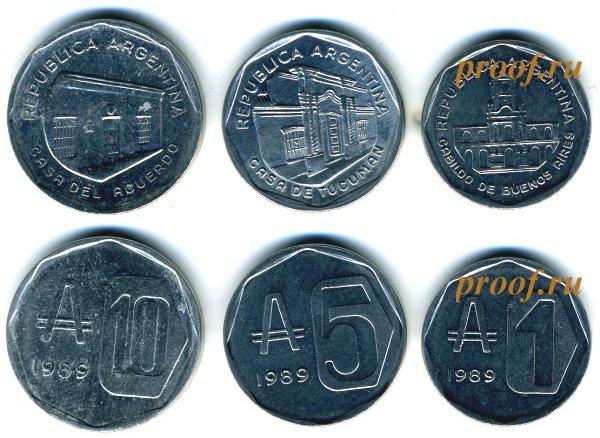 Набор из 3 монет: 1, 5, 10 аустралей. Местные достопримечательности. Р-2707