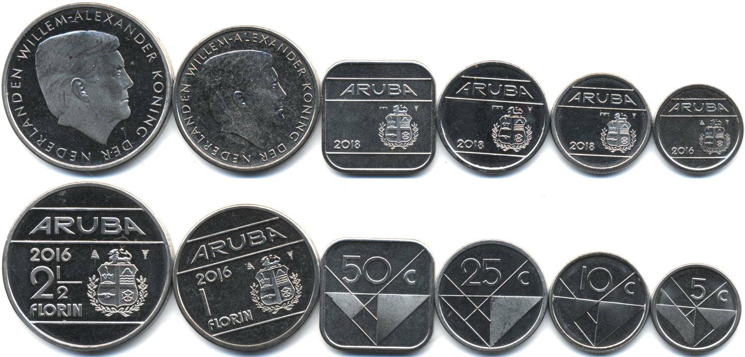 Набор из 6 монет: 5, 10, 25, 50 центов и 1, 2,5 флоринов. Р-300в