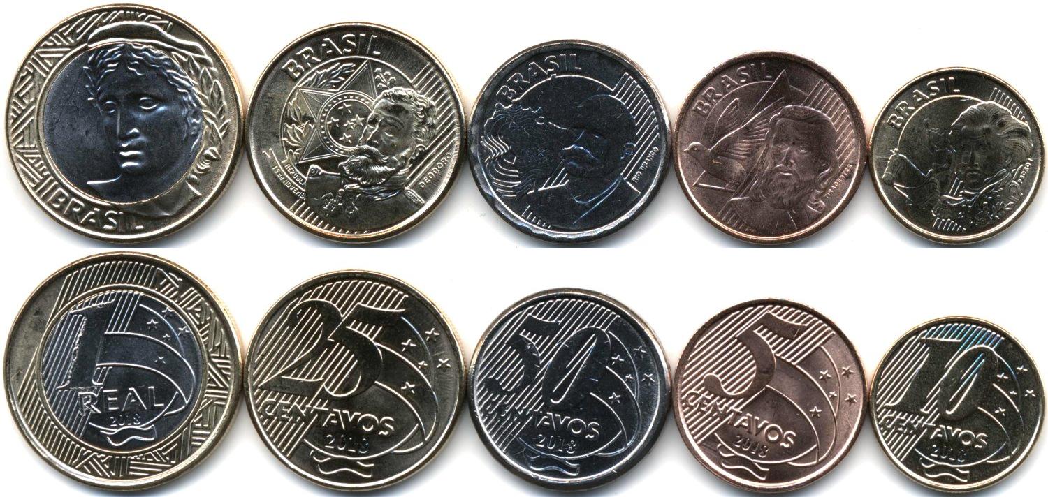 Набор из 5 монет: 5, 10, 25, 50 сентаво и 1 реал(бимет)