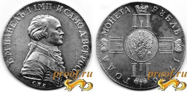 Копия пробного рубля Павла I с портретом и четырьмя вензелями и гербовым орлом на ре-версе