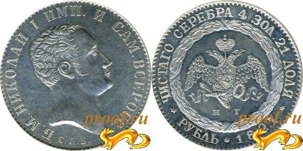 Копия новодельного рубля Николая I с портретом и гербовым орлом с опущенными крыльями ("портретный рубль")