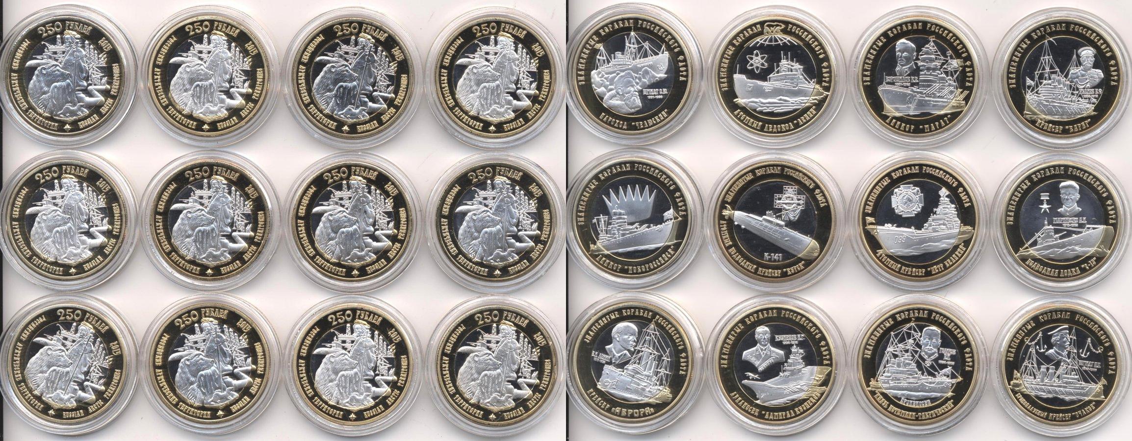 Набор из 12 монет: "Российские Арктические территории" с изображением знаменитых кораблей послепарусной эпохи М-294