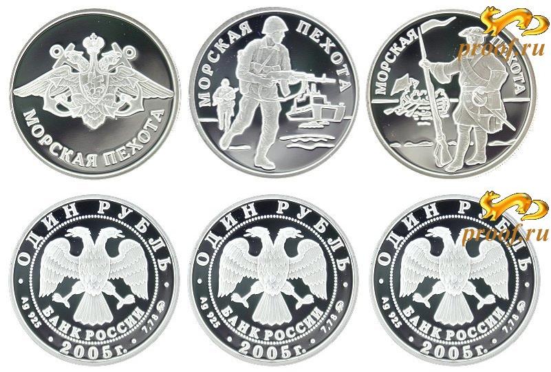 Набор из 3 монет. Вооруженные силы Российской Федерации. Морская пехота Н-327