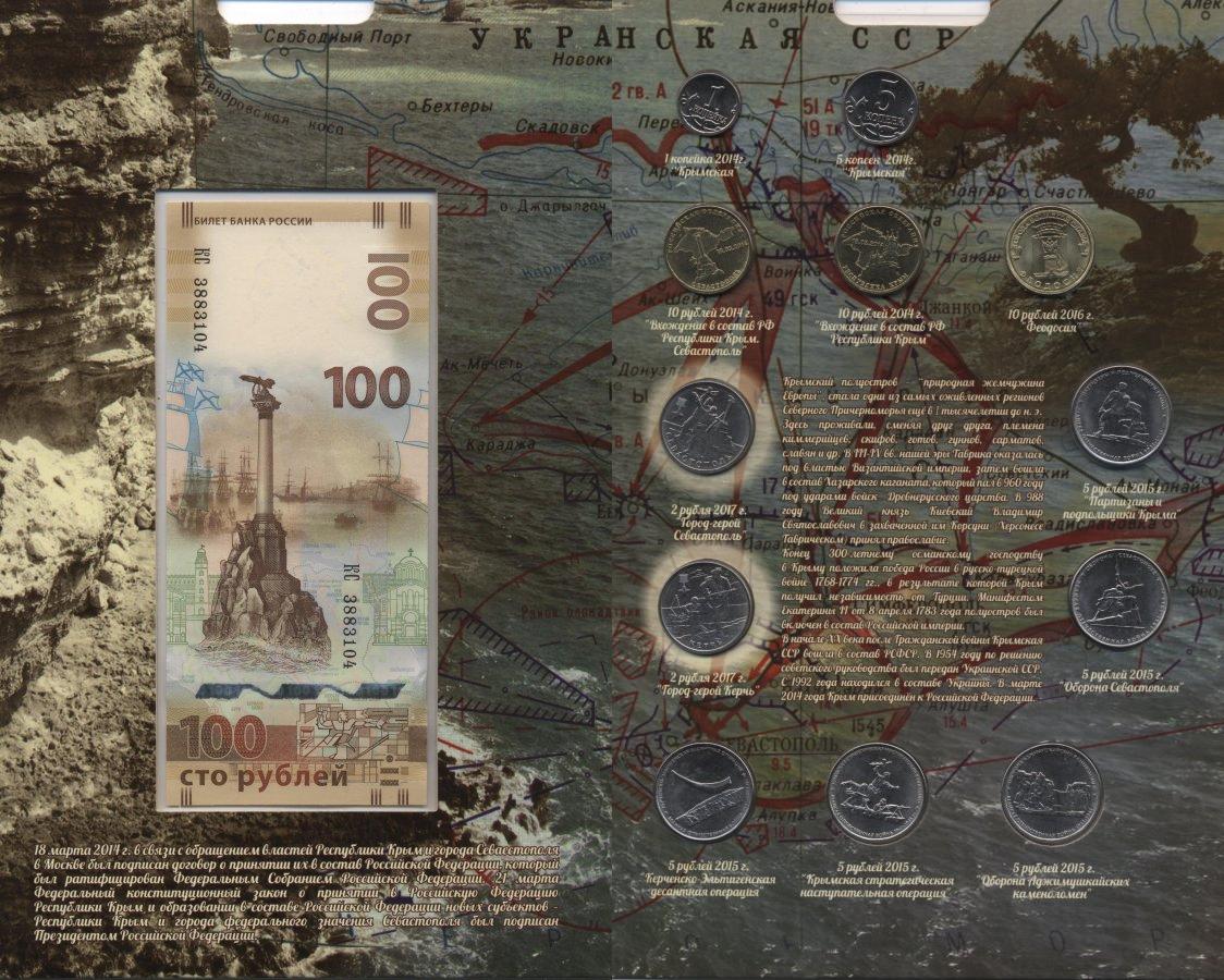 Коллекционный альбом с монетами и банкнотой, посвященный славным страницам истории полуострова Крым и города Севастополь