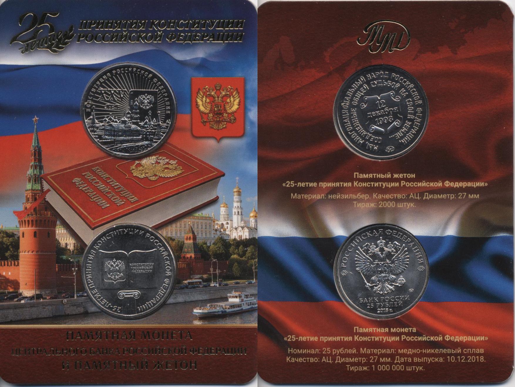 25-летие принятия Конституции Российской Федерации. С жетоном. Официальный буклет "Гознака".