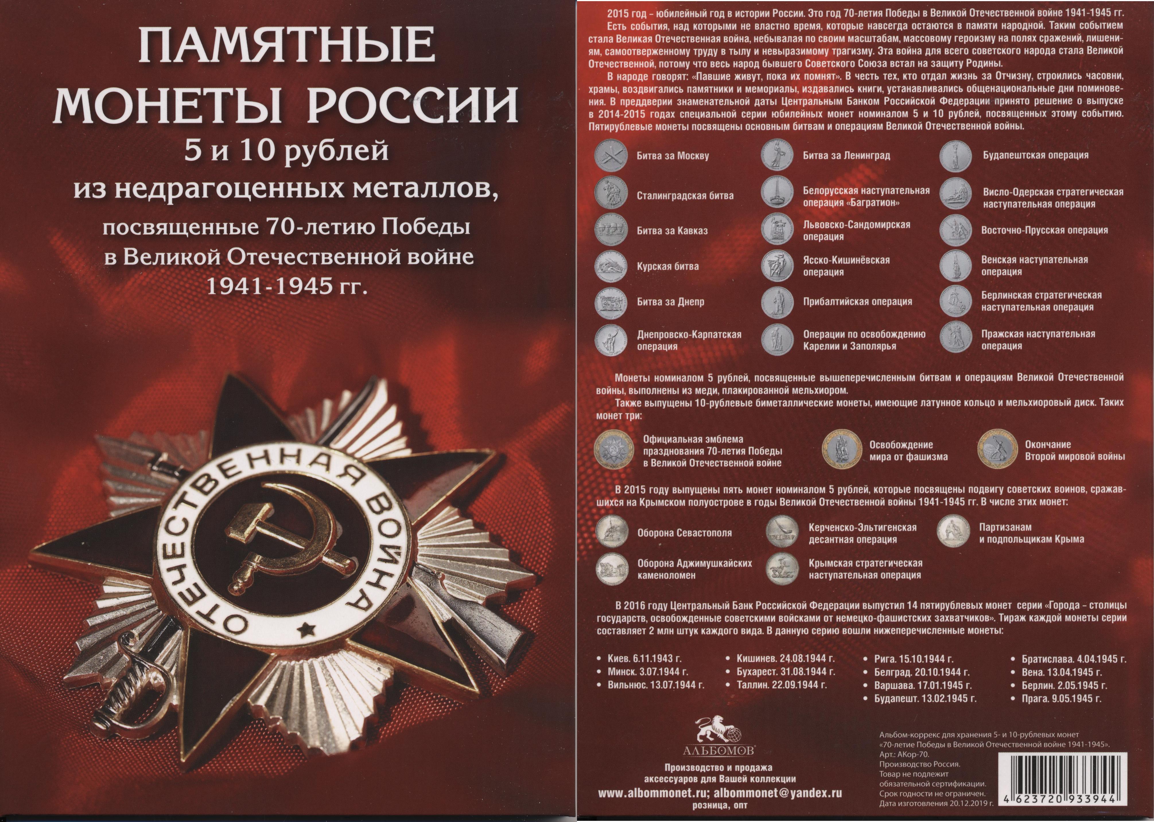 Капсульный альбом "Памятные монеты России 5 и 10 рублей", для монет серии: 70-летие Победы советского народа над фашизмом