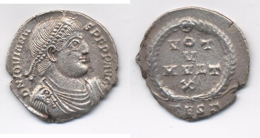 Флавий Клавдий Иовиан. DN JOVIANUS PF AUG. VOT V MULT X