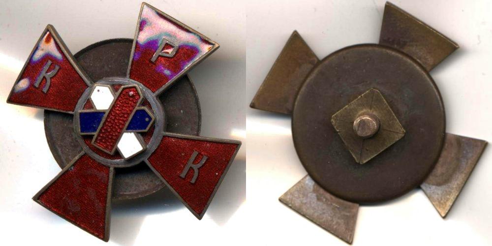 Знак Русского кадетского корпуса (РКК),созданного на базе нескольких кадетских корпусов Российской империи, оказавшихся после гражданской войны в эмиграции.Находился на территории Югославии(Сербии) в 1920-1944гг. Очень редкий знак